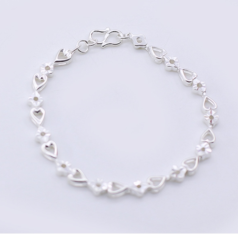 990 Silver Fashion Heart-to-Heart Flower Armband Temperament Silver Armband