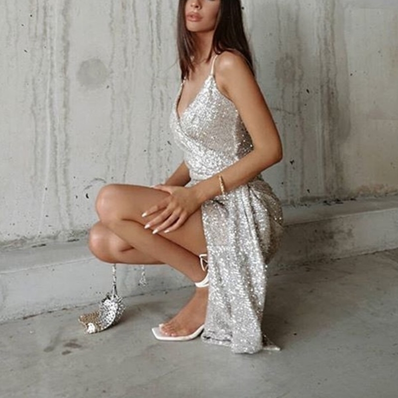 sexy klänning hög-end klass dyra design sensenisch ljus lyx paljetter födelsedagsfest årsmöte klänningar kväll klänningar